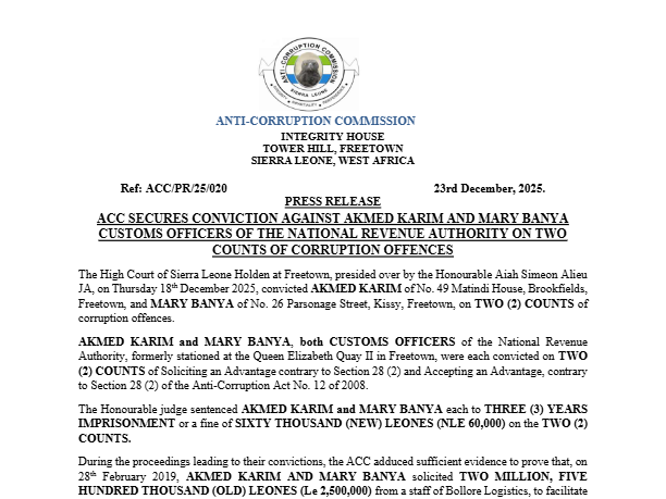 ANTI-CORRUPTION COMMISSION OF SIERRA LEONE